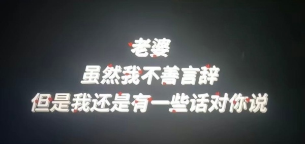 6月26日,河北唐山某电影院内,一男子在电影《消失的她》放映结束后,手捧大束玫瑰求婚,现场的电影幕布显示,“老婆/虽然我不善言辞/但是我还是有一些话对你说”。