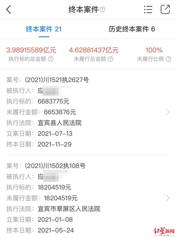 红星新闻记者了解到,应某某在成都牵涉的三起案件欠款本息达1.7亿元,而其总欠款已超4亿。他曾是四川宜宾当地煤矿“大佬”,一度被民间传为是当地的“首富”。
