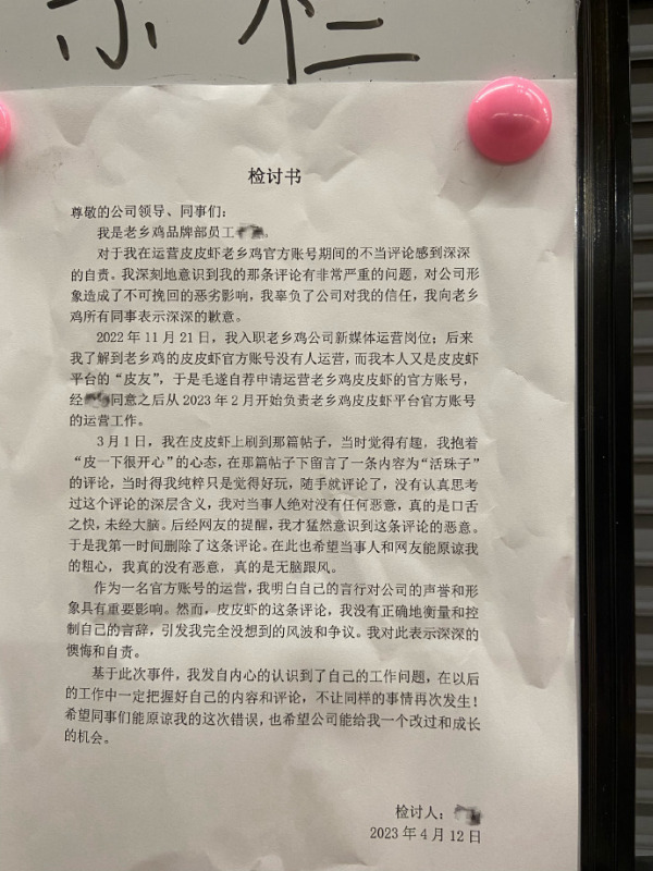 如果说老乡鸡重视此事,也确实重视,后来对员工做了思想教育,删除了不当言论。要说老乡鸡很重视,也不见得,此事发生在3月,老乡鸡4月份才进行处理。
