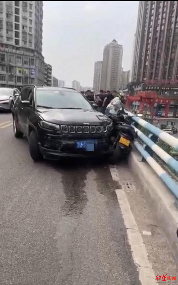 6月28曰晚,网传重庆发生一起交通事故,相关视频显示一辆黑色吉普车突然变道撞击到对向行驶的一辆摩托车,将摩托车司机撞下桥,此后摩托车司机倒在路上一动不动,头盔掉落,且头部周围有血迹。
