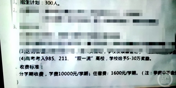 6月29日,该校一名工作人员介绍,2019年学校高中部成立,开始招生,招生简章上确实印了上述奖励措施。“印刷公司印的,叫他们把这条去掉,他们没有去掉。没有给学生奖钱,一个都没奖。”