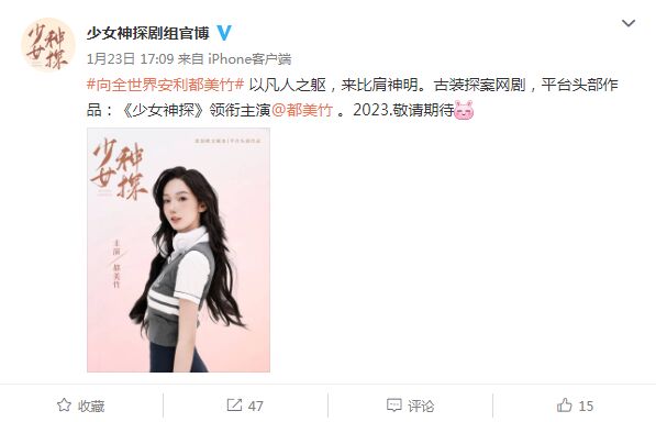 《少女神探》于1月23日官宣女主角是都美竹,此前都美竹因为爆料吴亦凡的丑闻而迅速走红,剧组的宣传文案也很有意思“以凡人之躯,来比肩神明”,多少带点蹭热度的嫌疑,没想到选角的热议刚过,又被曝出选角导演诱骗女生,爆料人则是此前因为吴亦凡事件和都美竹在网上隔空互怼的李恩。