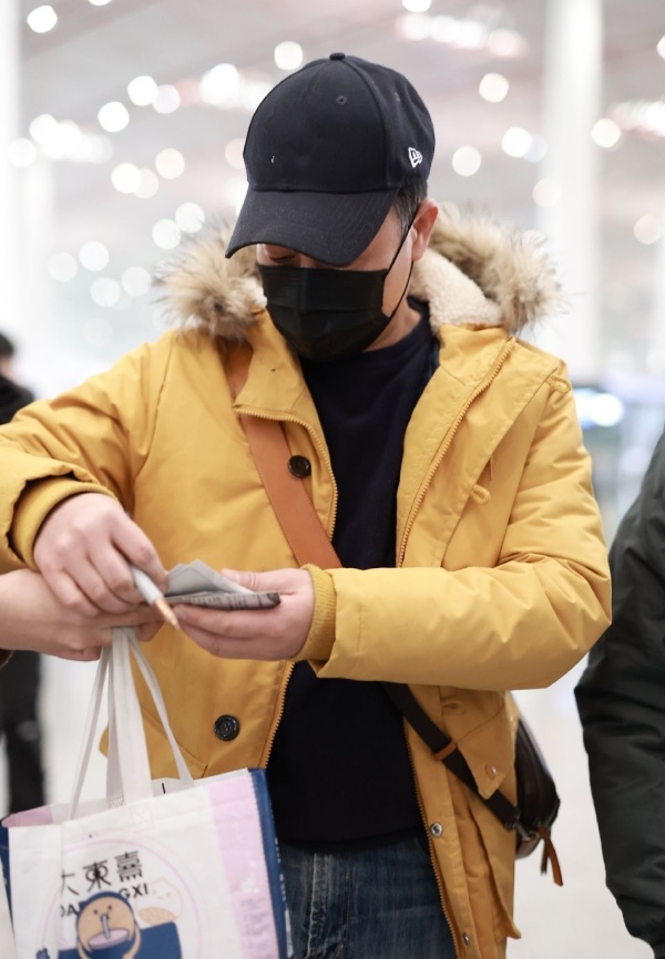 2月9日,刚参加完《狂飙》庆功宴的张颂文落地机场。当天的他身穿明黄羽绒服搭配朴素牛仔裤,头上戴着黑色棒球帽,整个造型相当质朴。除了身上背了个挎包,张颂文还扶着一个拉杆箱,看起来和普通乘客无异。