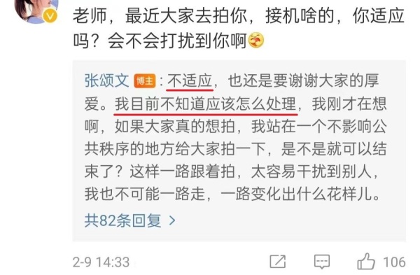 导读:2月9日,张颂文回复网友提问适不适应被接机:“不适应,也还是要谢谢大家的厚爱。我目前不知道应该怎么处理”。