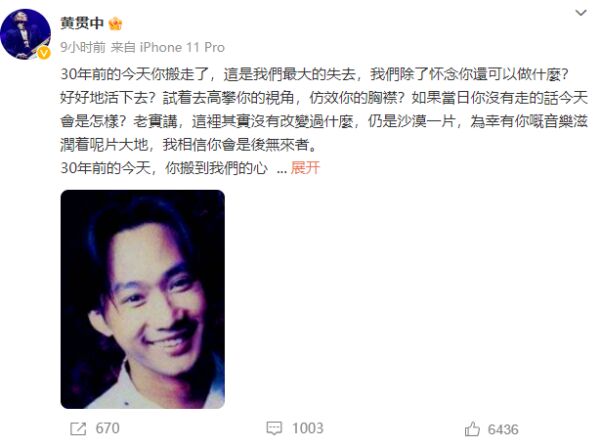 今年6月30日是香港著名音乐人黄家驹逝世30周年纪念日。