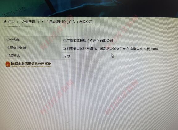 中广通能源控股(广东)有限公司目前为无效托管