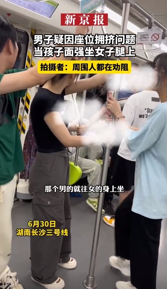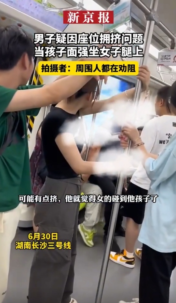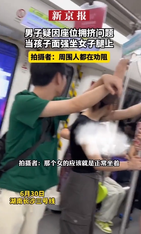 7月1日,根据新京报报道,6月30日在湖南长沙三号线上,网友发视频称一男子疑因座位拥挤问题,当着孩子的面强行坐在女乘客腿上。
