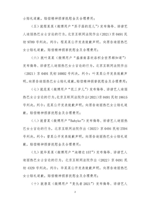 这次的控告是大规模的,没有见到过迪丽热巴一口气告了这么多人个人用户和企业主体,足以见得,迪丽热巴这次真的采取行动了,要拿起法律的武器维护自己的权益。
