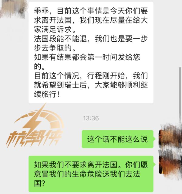 王先生说:“我们觉得巴黎不安全,要求改变路线,但旅行社认为是我们违背了合同改变行程,直接前往瑞士需要每人再另外支付255欧元的差价。体验感很差,完全不顾大家的安危。”