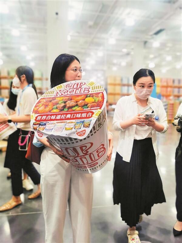 顾客购买巨型泡面桶。