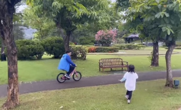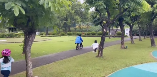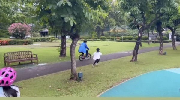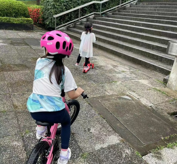 为了弥补这个遗憾,他亲自教导三个孩子骑车,与子女创造亲子回忆。