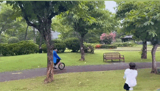 最先发现的人是小女儿霍中怡,只有4岁半的她,遗传了妈妈郭晶晶的运动细胞,跑得飞快,几乎快要追上踩车的爸爸。