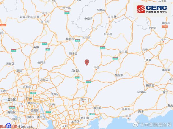 中国地震台网正式测定:07月03日20时57分在广东河源市东源县(北纬23.85度,东经114.50度)发生3.7级地震,震源深度9千米。