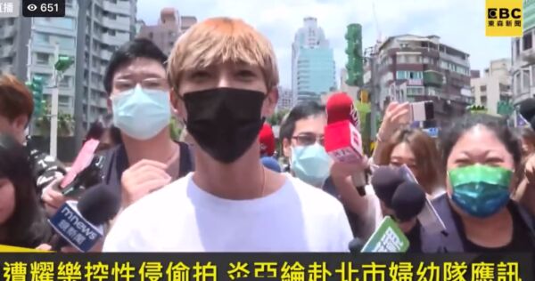 7月3日一大早,炎亚纶就在2名律师陪同下到台北市妇幼队笔录,做完笔录之后,炎亚纶身穿白色T恤,佩戴黑色口罩,在众多媒体的围追堵截下走出,口罩遮住了他的大半表情,他还画了精致的全套眼妆,让人感到他的心态较为淡定。