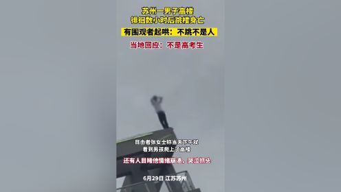 当晚,苏州市网络联合辟谣平台发布通报称,经属地部门调查核实,跳楼男子系外省来苏人员,年龄24岁,非应届高考考生,因家庭琐事跳楼轻生,相关“因考试失利轻生”内容系谣言。