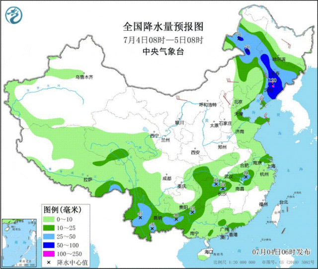 降水方面:预计未来十天(7月4至13日)主要降雨区位于黄淮、江汉、江淮、江南北部、四川盆地以及云南西部和南部、西藏东南部等地,累计降水量一般有50至90毫米,部分地区有100至150毫米,局地超过200毫米,主要过程出现在6至8日和10至13日;另外,内蒙古东部、东北地区多降雨天气,部分地区累计降水量有40至80毫米、局部100毫米左右,最强降雨时段为4至5日;上述大部分地区降水量较常年同期偏多2至7成。