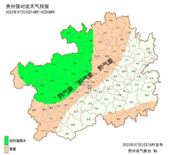 贵州其他地市的情况也不容乐观,据贵州省气象台预报,预计7月3日傍晚到7月4日白天,全省阴天间多云有阵雨或雷雨,省的中西部和北部地区有中到大雨。过程期间,局地伴有短时强降水、雷暴大风等强对流天气。