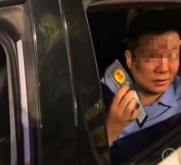 ▲后排男子亮出警官证质问“能不能走”。图片来源/视频截图
