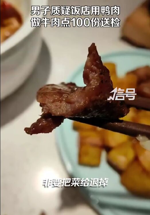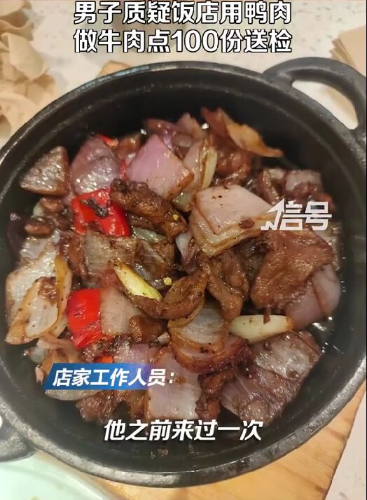导读:2月10日,湖北武汉,男子在就餐时质疑店内用鸭肉冒充牛肉,目前已经点百份餐送去质检。店家回应称确定是牛肉,进货都是按照食品监管制度要求来的。