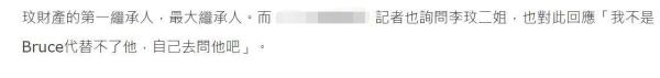 反而是说:“我不是Bruce代替不了他,自己去问他吧!”这样的回答非常冷淡了,看来Bruce与李玟家人的关系应该是非常疏离的。