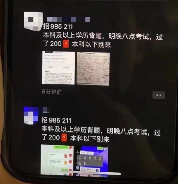 黄牛在朋友圈招募大学生背题库。图/林俊杰超话