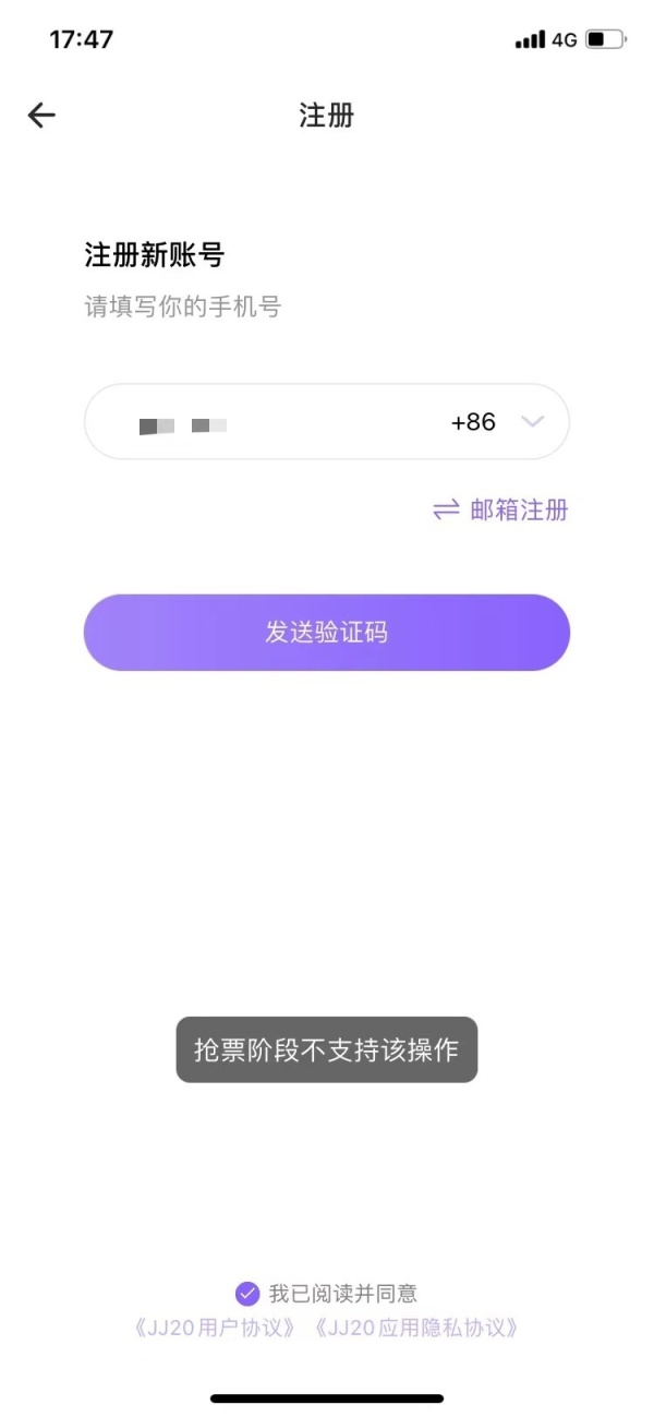 7月10日下午,JJ20APP已停止新用户注册。图/JJ20APP截图