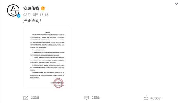 2月10日,张译方发出严正声明,表示部分网络用户发布了毫无事实根据的无端猜测,发布“张译在剧组耍大牌”、“张译轧戏,戏霸,擅自改戏删戏”、“张译当着孙俪面故意抽烟”等恶意诋毁、诽谤演员张译的不实言论。