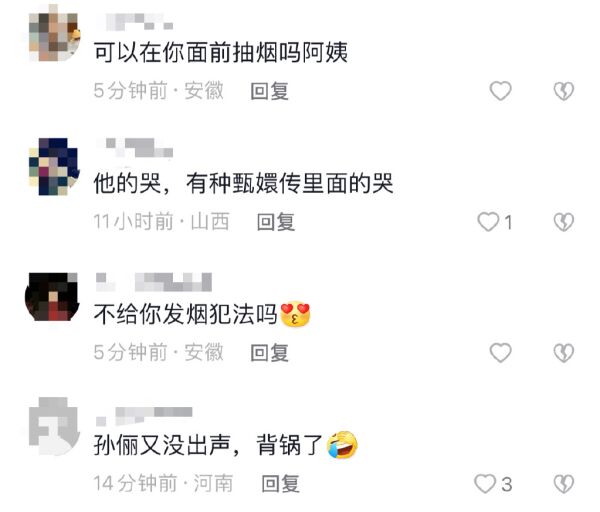 因为在声明中的那句关于孙俪的话,不少人就在评论区中留言“听说不能在你面前吸烟?”有的更是质疑当你面吸烟犯法吗?不过也有一些网友们觉得孙俪很无辜,这件事她一句话都没说,就意外背了个锅,受到了别人的指责。