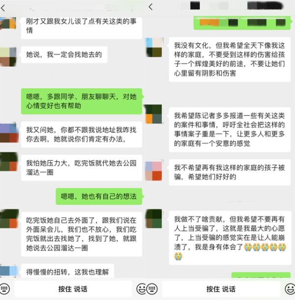 这之后,为避免女儿受伤害,他开始在微信、视频通话中“配合她的表演”。