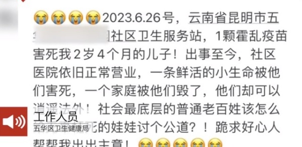 7月11日,据九派新闻视频报道,近日在云南昆明,网传一两岁多幼儿服用社区卫生服务站口服疫苗后翌日死亡。