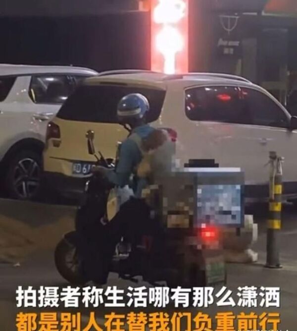 另外,视频拍摄者张先生称:当天晚上去散步,突然看到外卖小哥背着小孩送外卖。路过KTV在外面想了一会后,还是提着餐进去了。外卖员怕里面吵到小孩,于是用衣服裹住小孩脖子那里,是想挡住小孩的耳朵。张先生说生活哪有那么潇洒,都是别人在替我们负重前行罢了。