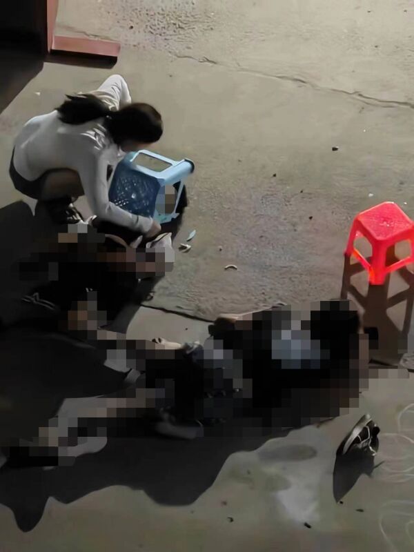 7月7日,小铭在楼下被一名从17楼掉下来的男子砸到,至今仍在ICU中昏迷,图中左侧男子为小铭,白衣服女子为孙女士。受访者供图
