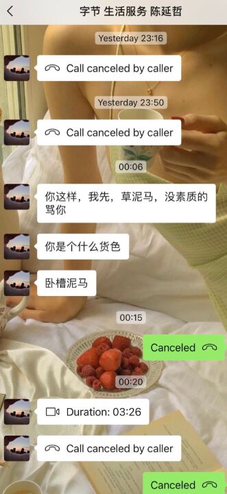 但事情并未就此结束,该女生随后又遭到字节员工陈Y哲的无端辱骂。