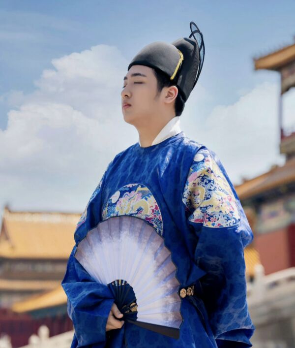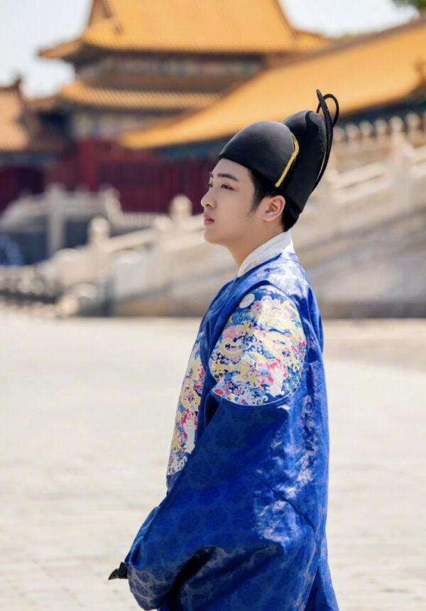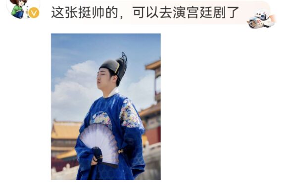 照片中的费曼身穿蓝色的古装,虽然细看五官很周正,樱桃小嘴十分可爱,但是乍一看费曼又和电视剧里很多公公的形象相似度确实挺高的。因为很多公公看起来也会比较圆润,古装帅哥至少下颚线棱角分明。