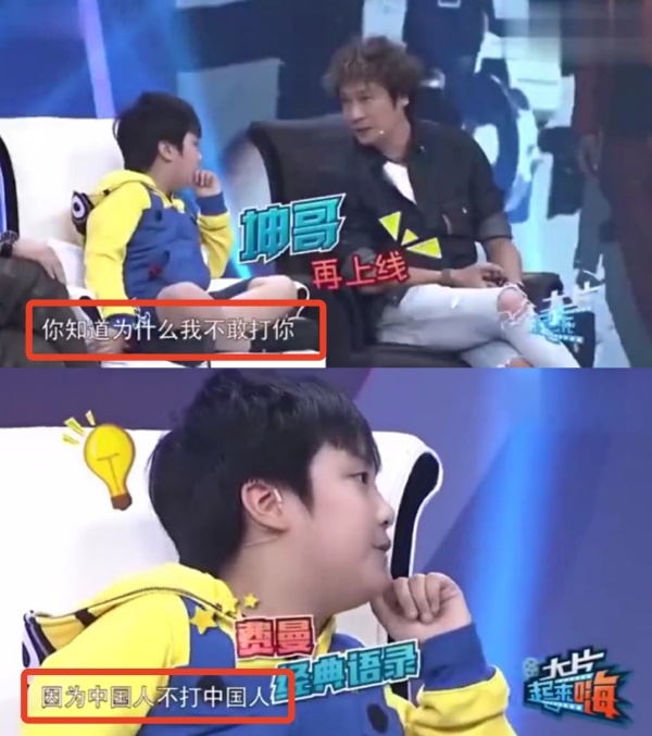 这次父子互怼让人不禁想到了两人一起参加节目时的对话,吴镇宇曾问儿子“你知道为什么我不敢打你吗”,费曼当即高情商回应:因为中国人不打中国人!还表明了自己的爱国立场。