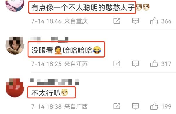 没想到底下都是反对的声音,大家纷纷吐槽“没眼看!不太行吧!有点像一个不太聪明的憨憨太子”。