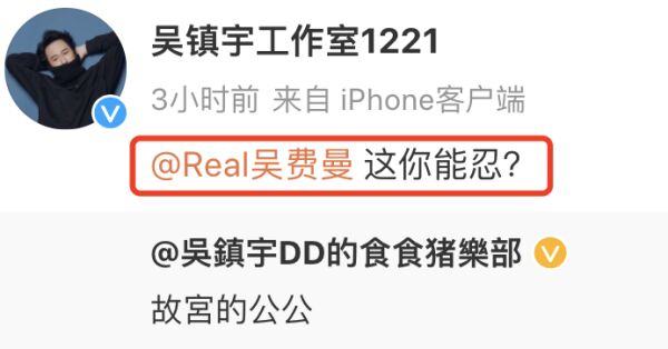吴镇宇发文后,工作室生怕费曼看不见,还特意艾特了费曼挑衅称:这你能忍?