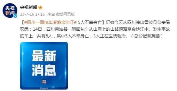 导读:近日,四川雷波县一辆面包车从山崖上的山路滚落至金沙江中。7月16日,记者获悉,车上一共有8人,其中5人不幸身亡,剩下3名正在医院救治。