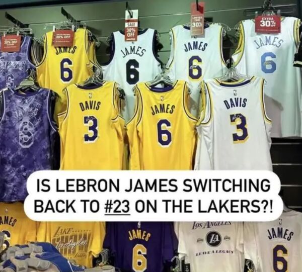 詹姆斯原先是想在上赛季换回23号球衣,但因为6号球衣的库存问题以及换号的话会导致没有足够的复制品能够用来满足球迷们的需求,换号只能作罢。
