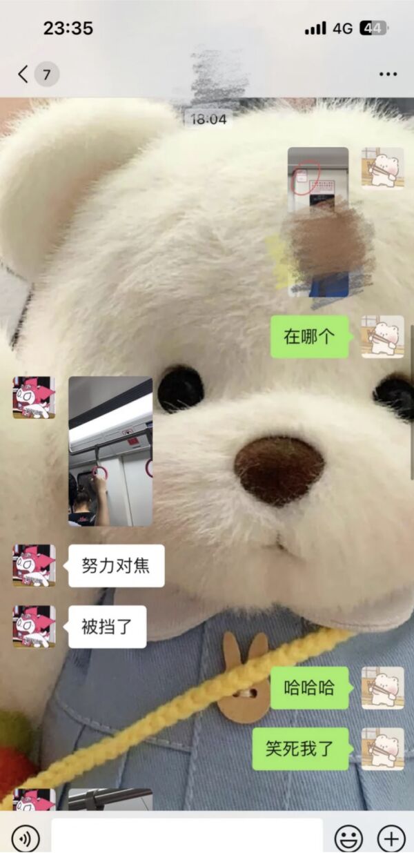 那这个姑娘到底有没偷拍他呢,其实还真没有。当时这姑娘正在地铁上与朋友聊天,她当时只是在拍车厢上的标识,她还给出来和朋友那时的聊天记录。通过她们的聊天记录,确实可以看到当时她并没有拍人,而是拍车厢门上的标识,第一次被挡住了,后面还拍了一次。