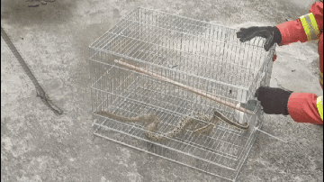 导读:近日,江苏消防接到报警,称家中有蛇出没。消防到场后得知,一条大蛇狂吞2只鹦鹉后肚皮撑大,被困鸟笼。随后消防人员将蛇带到野外放生。