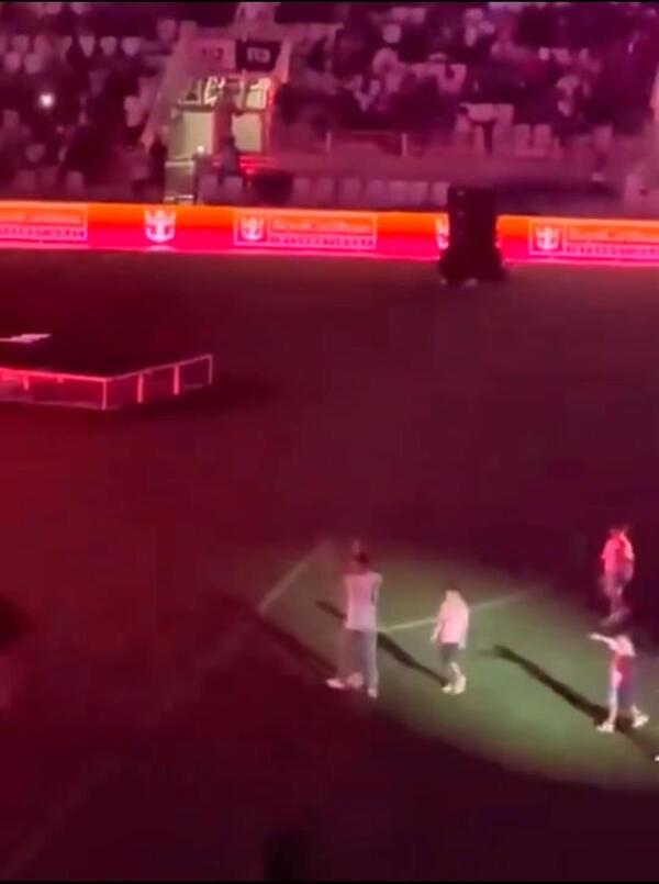 在亮相仪式上,出现了有趣的一幕。梅西的儿子蒂亚戈趁着梅西向现场观众致意,踢球“穿裆”了梅西,随后还举起双手庆祝。