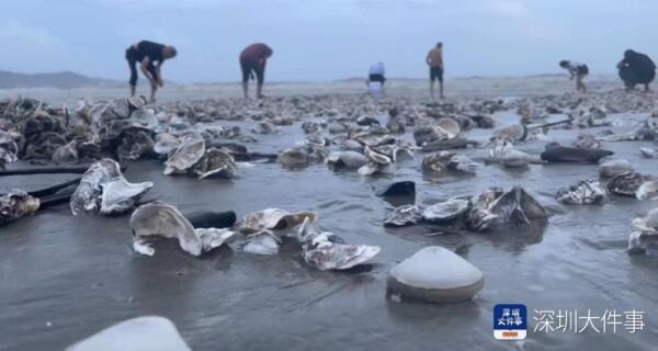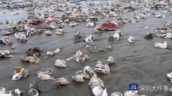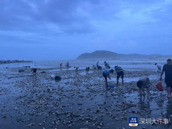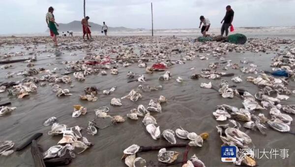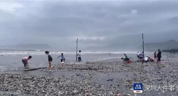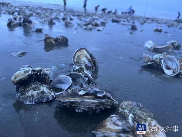 导读:7月17日,台风“泰利”登陆前,位于深汕特别合作区的银海湾沙滩出现大量生蚝、青口贝、海蛎等海鲜。