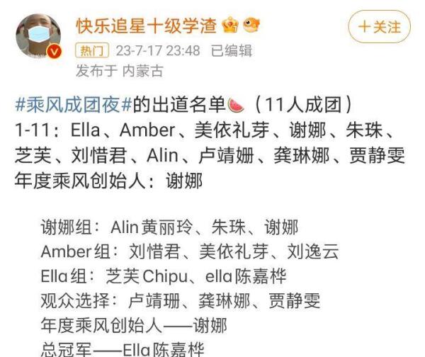 北京时间7月17日晚,芒果台综艺《浪姐4》成团夜录制结束,最终十一位姐姐获得了成团出道的名额,十一人与之前网传出道名单完全一致,陈嘉桦毫无疑问第一。