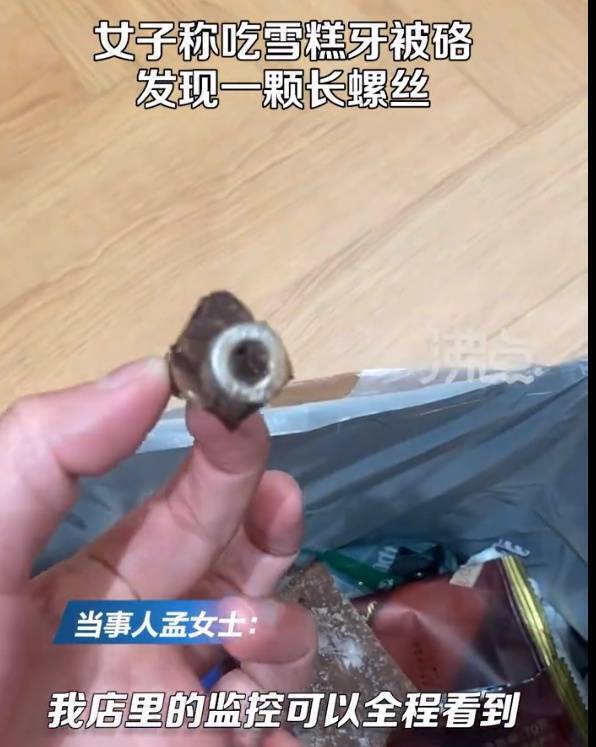 当事人称,雪糕是从批发小店买的,下午吃的时候牙被硌了一下。看到里面是一个螺丝,有钥匙大小。当时很惊讶,感觉食品安全问题要重视一下,自己有从冰箱拿出雪糕到吃出螺丝的全程监控。后来联系厂家客服,对方推卸责任,说不可能出现这种情况,让自己处理,态度很硬气。