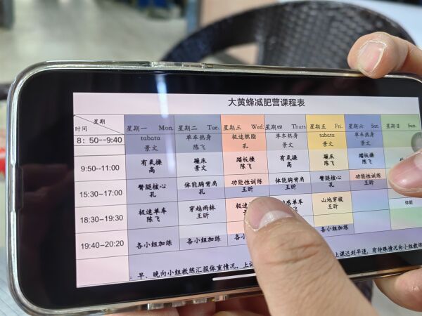 6月15日,大黄蜂减肥营教练为记者介绍减肥营的课程表,每天训练时间为4个半小时。  新京报记者 刘思维 摄