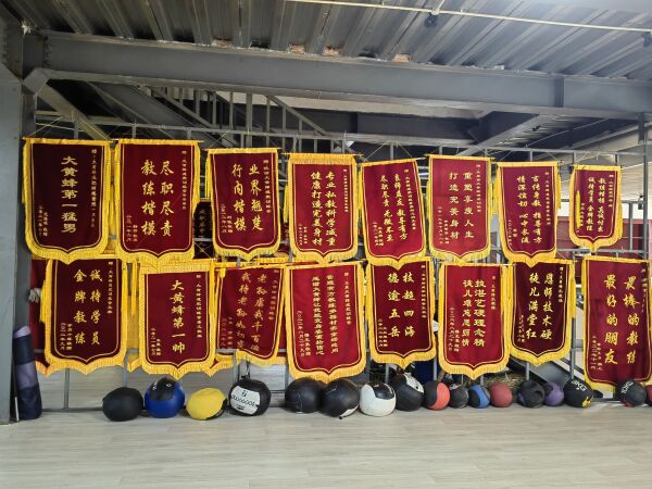 6月15日,陕西大黄蜂减肥营,训练场四周挂满锦旗。  新京报记者 刘思维 摄