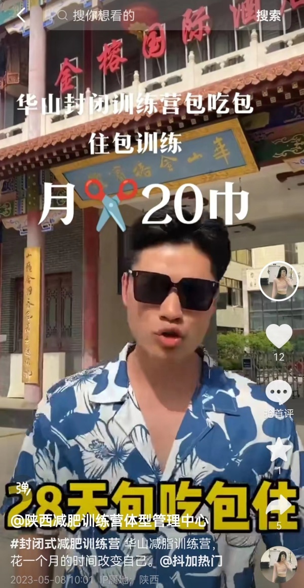 这里不像常繁华街区的健身房,能招揽不少附近客流,减肥营一般位于破败、偏僻的城中村,它们盯准了用户遍布全国的短视频平台,做流量生意。