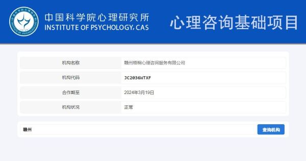 梧桐村心理(机构代码: JC2036WTXF)获中科院心理所继教学院同意,引进心理咨询基础培训项目(可登陆心理所网站首页“项目合作机构”栏目,搜索赣州可查阅当地对接机构名单http://jcpx.psych.ac.cn/),梧桐村心理是赣州唯一一家代理机构。