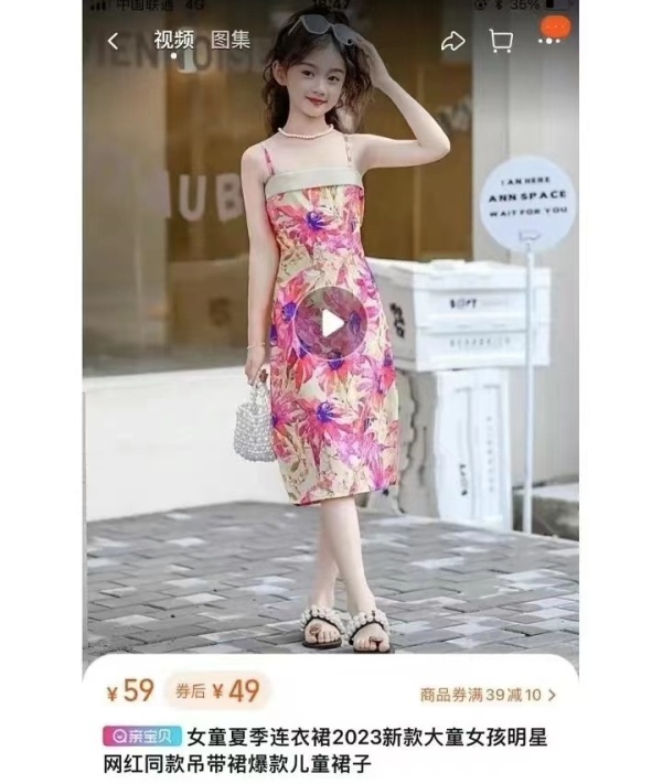 7月19日,九派新闻记者在网购平台检索同款儿童连衣裙发现,多位商家在其店铺上架该裙装,价格在49-79元不等。从花色、吊带裙款、布色拼接等方面看,与新闻当事人所穿裙装款式相差不大,尺寸有所区别。